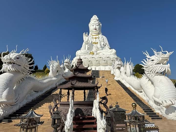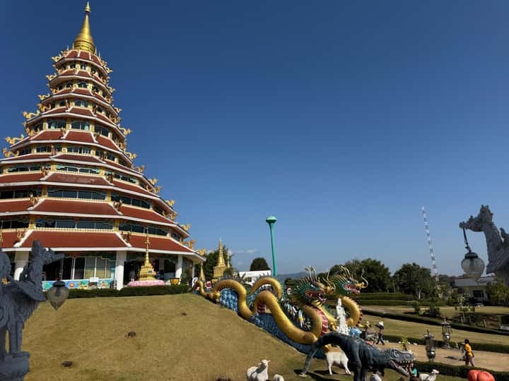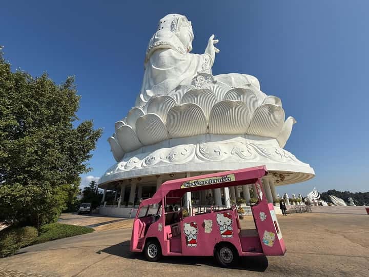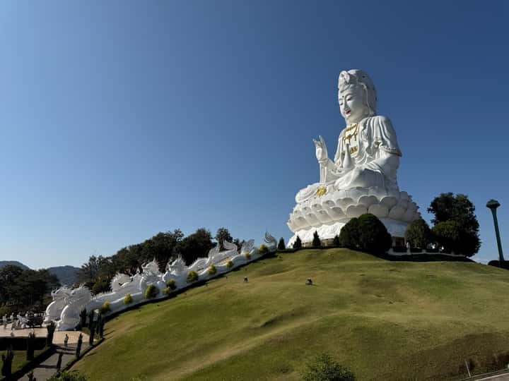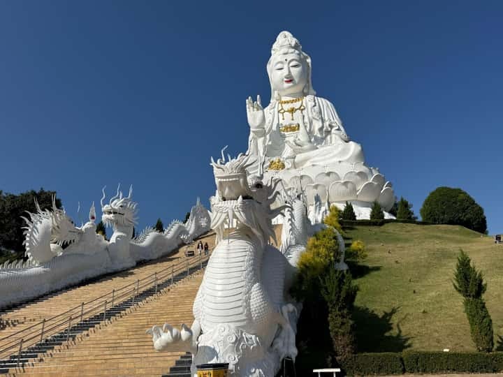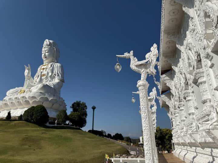 Next, we journey into the hills for a moment of profound grandeur. The colossal, nine-story pagoda, adorned with intricate dragon motifs, pierces the sky. You’ll step inside the serene presence of the great white Guan Yin (Goddess of Mercy), her compassionate gaze a humbling spectacle. Your guide will share the stories woven into this sacred site before you ascend the pagoda (by stairs or elevator) to be rewarded with a breathtaking, 360-degree panoramic vista of Chiang Rai’s verdant landscapes—a vista reserved for those who seek a higher perspective. -
